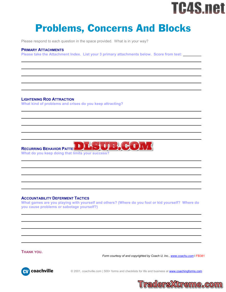 Problems Concerns And Blocks A Worksheet To Determine What Is In Your Way - JPG Image File