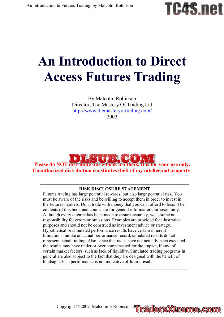 Malcolm Robinson An Introduction To Direct Access Futures Trading - JPG Image File