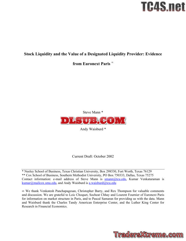 Mann Venkataraman And Waisburd Stock Liquidity And The Value Of A Designated Liquidity Provider Evidence From Paris Euronext - JPG Image File