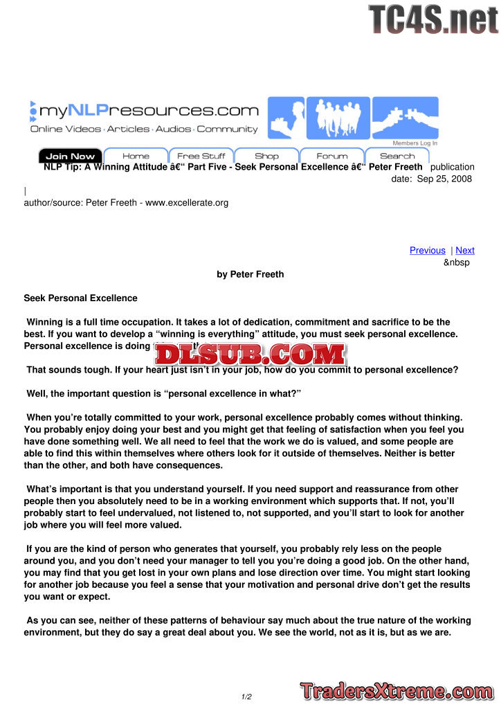 A Winning Attitude Part Five Seek Personal Excellence Peter Freeth - JPG Image File