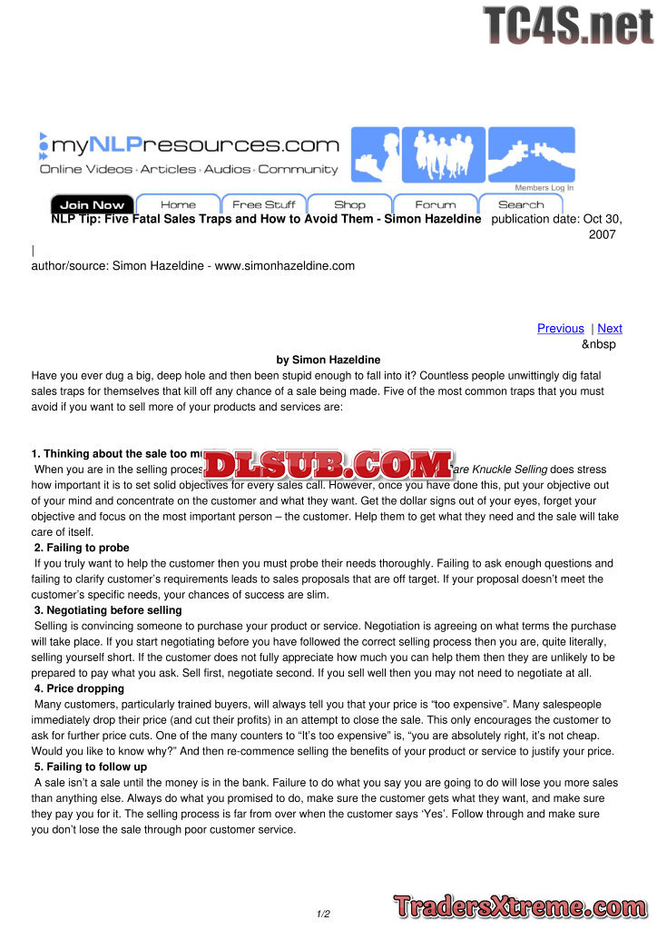 Five Fatal Sales Traps And How To Avoid Them Simon Hazeldine - JPG Image File